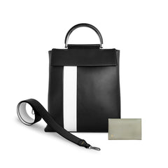 Our Hunter bag comes with multiple D-Rings designed for a strap hook. We're pairing this beauty with the shoulder strap in black & white by hooking one end to top-right (near the zip) & the other end to the bottom left of the bag.
