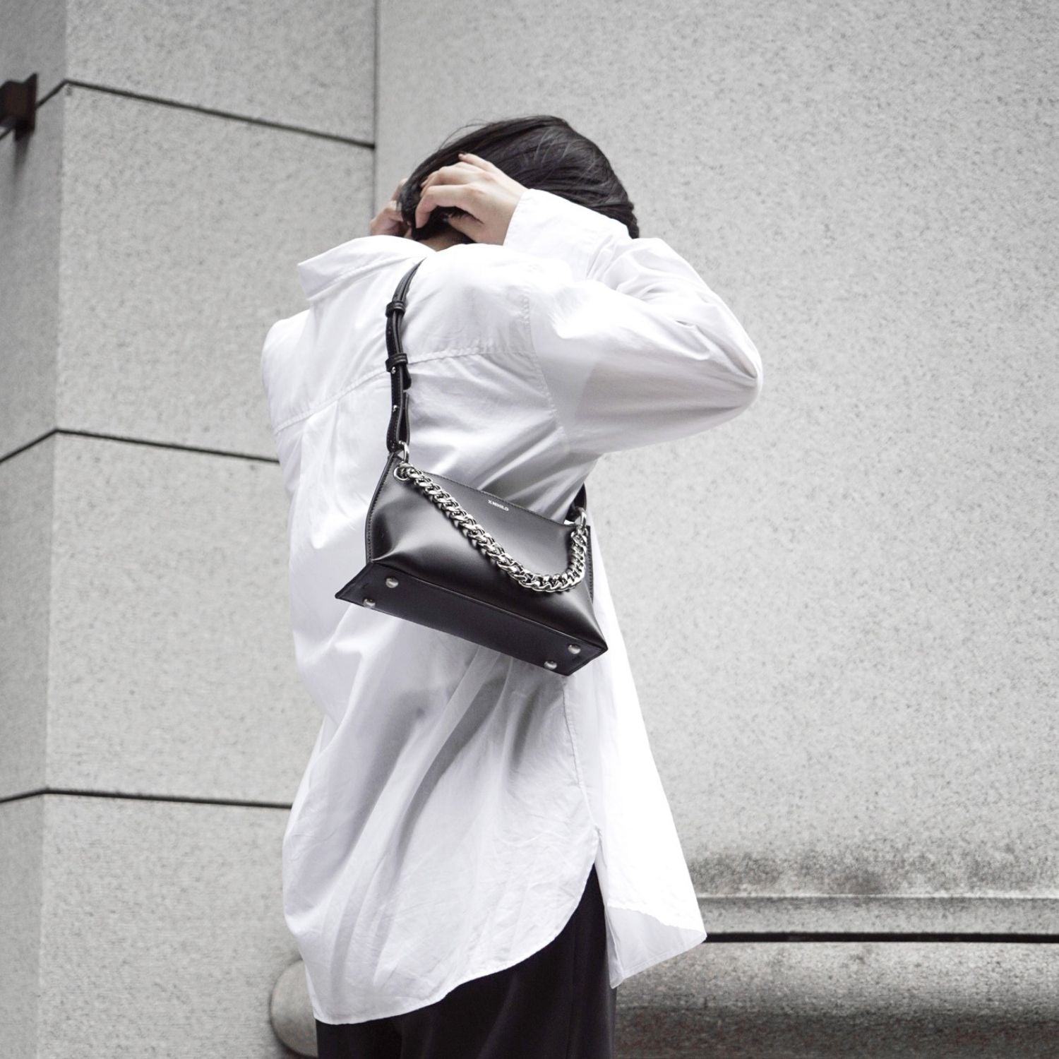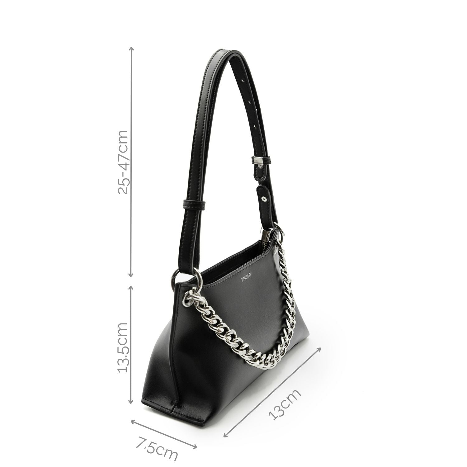 Transform the distinctive chains into a sophisticated top handle, perfect for an elegant evening affair. The secure zip closure and intricate side designs, inspired by X NIHILO's signature "details between the lines," blend functionality with refined artistry, making Everly a masterpiece for any occasion.