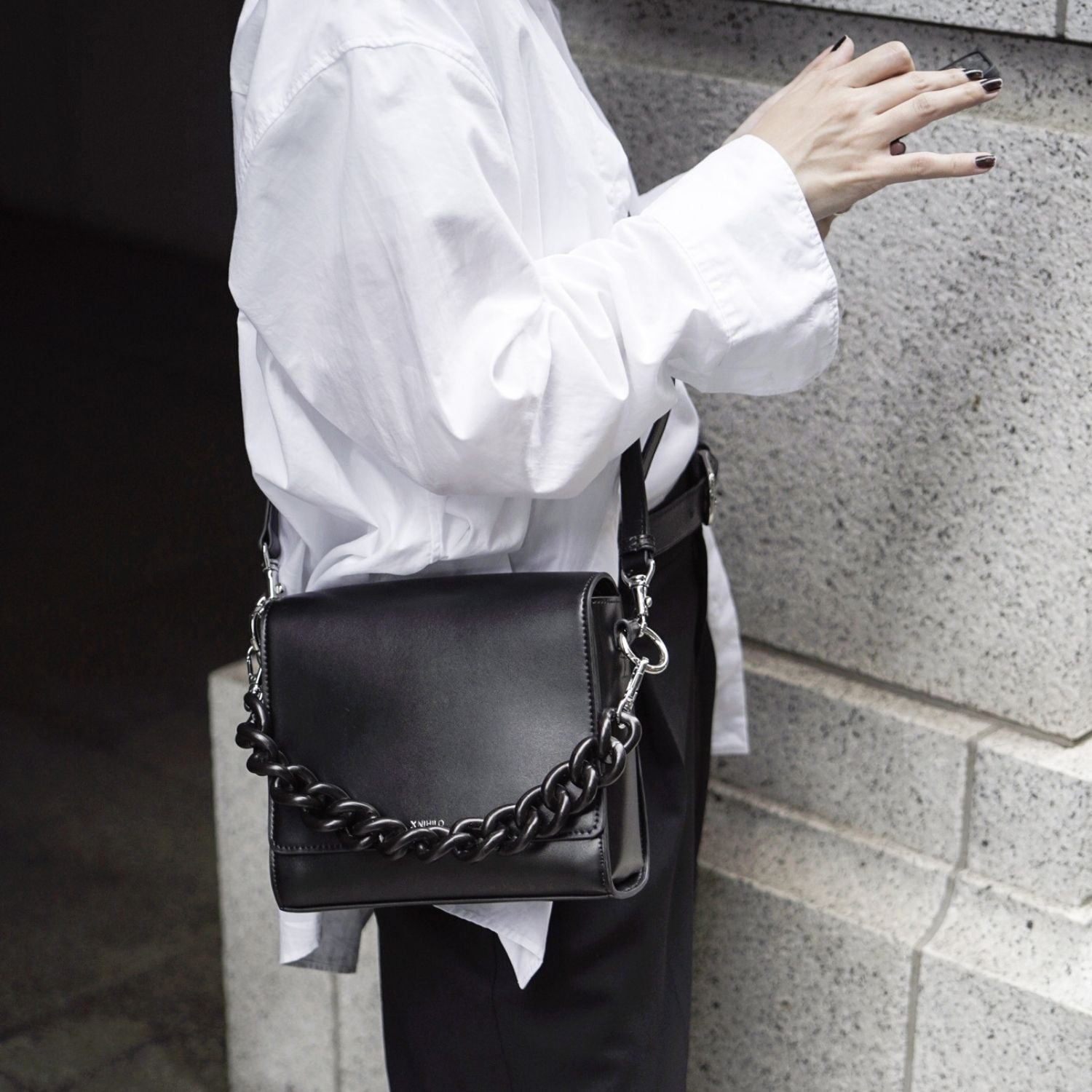 The Hardy bag design is a reflection of self-growth experience. Each loop that makes the feature chain signifies events in life. And like the chain; from the lowest point, it goes up, and at the highest point, it goes down - continuous on repeat. It is where silence echoes just as loudly as sound, where darkness reveals just as much as light, and where complexities are hidden just below the surface. A simple complexity shines through perfected design elements like fluid volumes, contrast surfaces and sophisticated tailored lines.