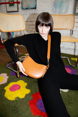 Experience the fusion of comfort and style; our Lune saddle bag features a metal zip closure and a wide shoulder strap designed for all-day wear, crafted in rich, smooth leather to elevate your everyday ensemble.