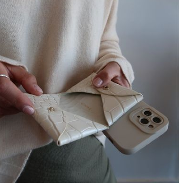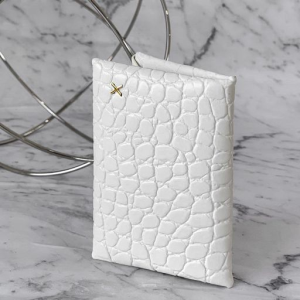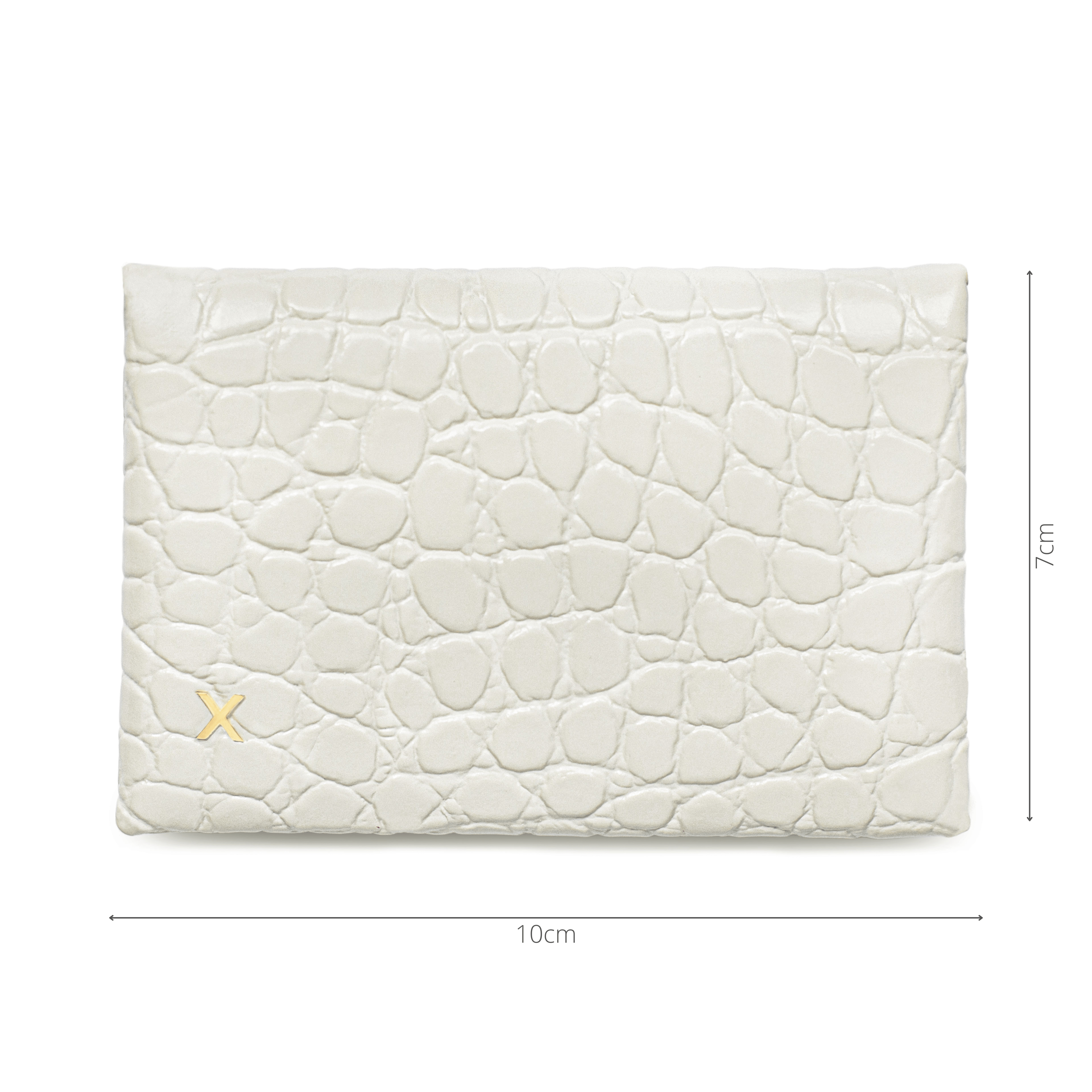 Carla plays no games, designed to hold up to 8 standard credit cards on each side. Crafted from textured croc print leather, this cutie will secure your cards together with press-stud closure and the custom stainless steel logo hardware in classy soft gold. Convenience and accessibility are key, Carla cardholder will be your new everyday best friend.